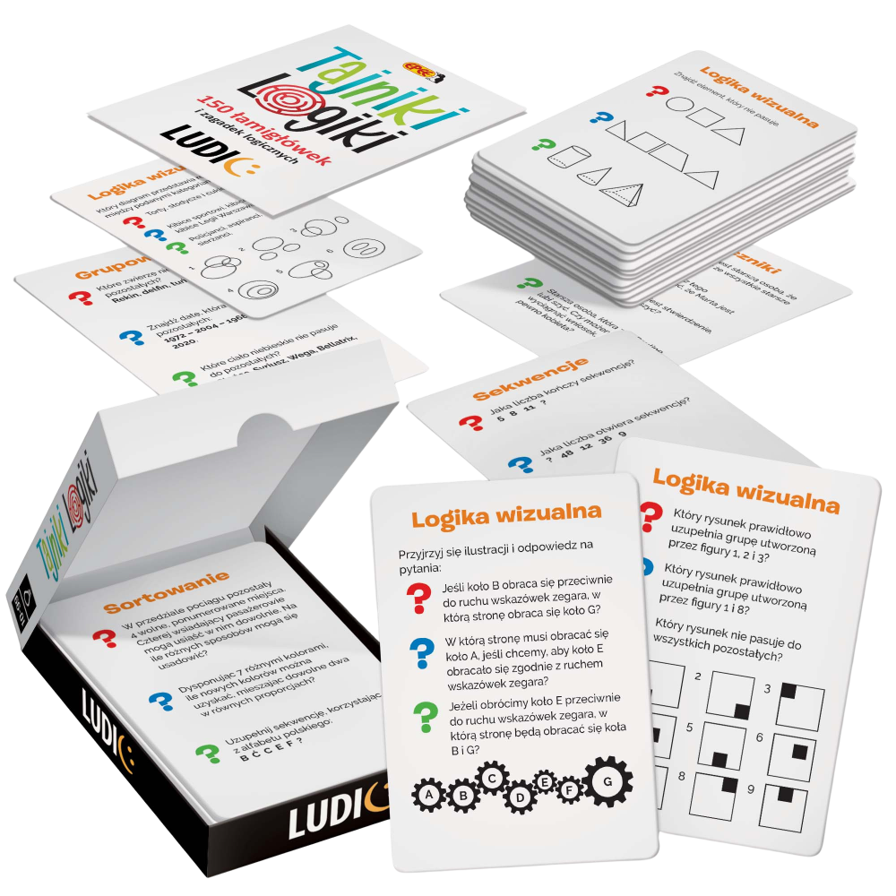 Wskazówka: Pierwszą rozgrywkę zacznij bez tasowania talii – zadania są ułożone tak, by stopniowo wprowadzać Cię w fascynujący świat logiki